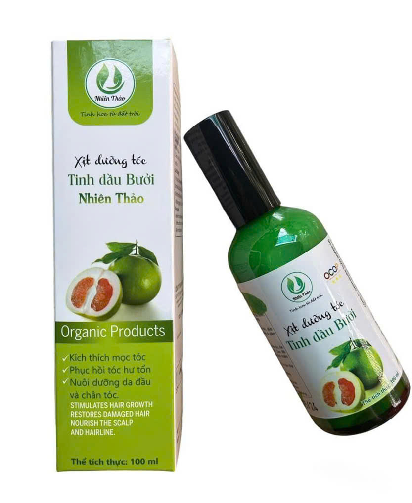 Xịt dưỡng tóc tinh dầu bưởi được sản xuất từ nguyên liệu là vỏ quả bưởi tươi bằng phương pháp chưng cất lôi cuốn hơi nước, với thiết bị chưng cất hiện đại sử dụng bằng nguồn điện, thiết bị chiết rót tiên tiến cho ra đời sản phẩm xịt bưởi màu trong, có mùi thơm đặc trưng từ vỏ quả bưởi, có tác dụng giảm rụng tóc, kích thích mọc tóc, làm mềm mượt tóc, bóng tóc, lưu lại hương thơm tự nhiên, dễ chịu, mang lại nét đẹp quyến rũ cho mái tóc của bạn, đặc biệt với thành phần 100% nguyên liệu tự nhiên, sản phẩm tuyệt an toàn cho da, tóc.